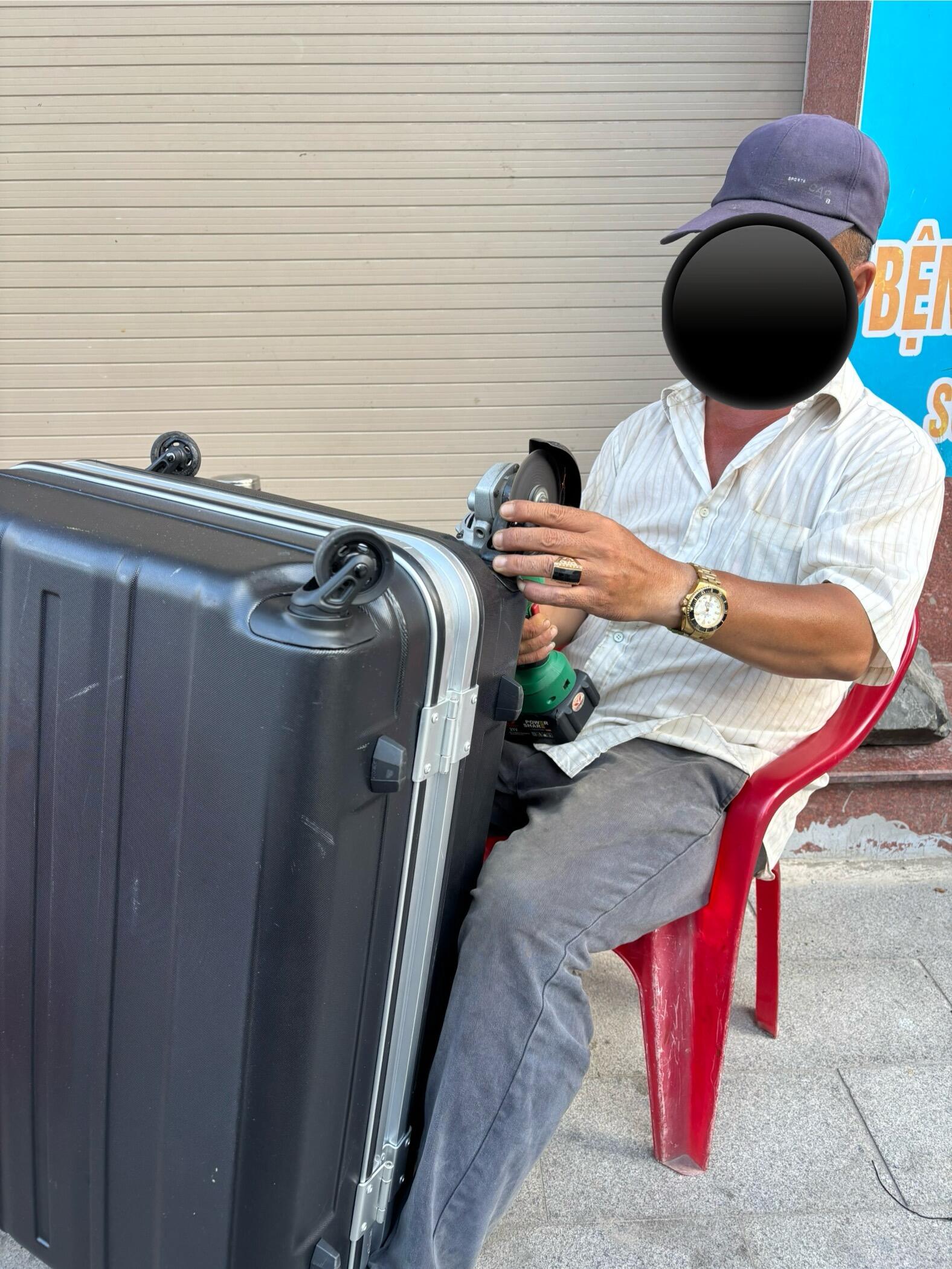 私は以前旅行中にトランクの車輪が1か所壊れてしまい、家から2分ほどの場所にいた看板・道具だけがある道路の一角で営業している青空修理屋さんを利用しました。トランクを見せると、持っているタイヤを3種類見せて、値段を教えてくれました。私がタイヤを選択すると、前後どちらか(2か所のみ)、全部(4か所)どちらにするか選択すると、すぐに修理してくれました。所要時間は全部で10分ほどです。全箇所修理だと35万ドン(約2100円)だよと言われましたが、今回は2か所20万ドン(約1200円)のみ修理しました。出来上がりのクオリティーも高く、日本の相場と比較すると、3倍以上安く修理することができました。トランクの修理以外にも、靴・サンダルや普通のカバンなども同じお店で修理することができます。