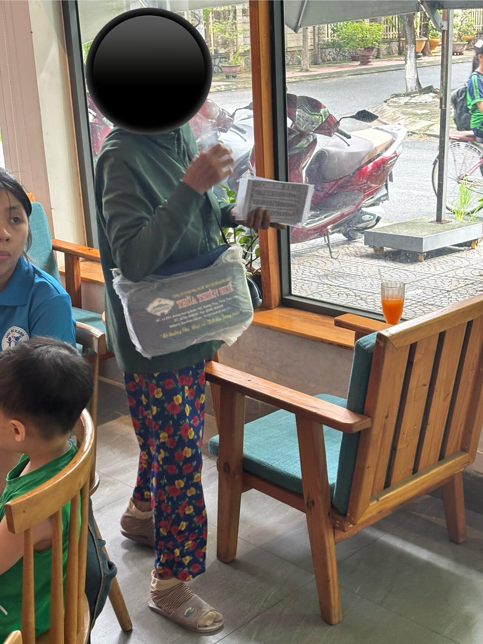 (写真:宝くじを売りに来る様子、このカバンを持って売っていることが多いです)