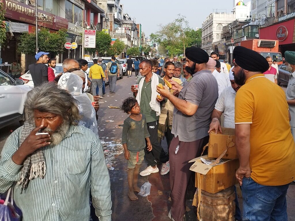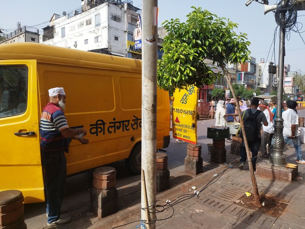 グルドワーラーから少し歩いた場所でも、スィク教徒が貧しい人たちに炊き出しをしていました。車には「グルのランガル奉仕」(スィク教祖の共同食堂の奉仕)と書いてあります。白い帽子をかぶったおじさんに「素晴らしい活動ですね」と声をかけたら、「お前さんも食べて行かないかい?」と笑顔を見せてくれました。