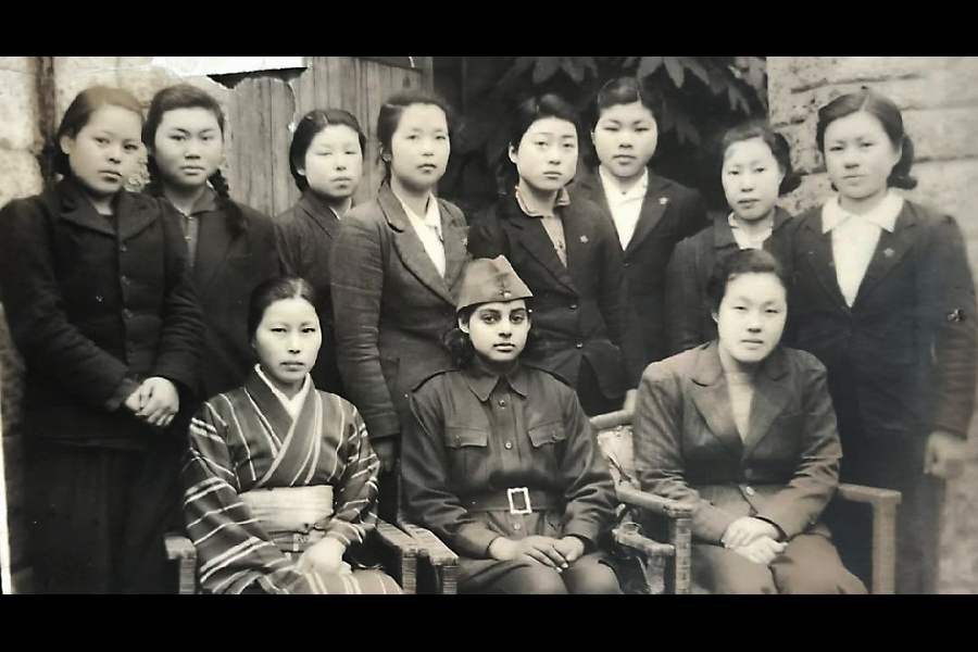 写真は、昭和高等女学校(昭和女子大学)の同級生たちがアシャの出征を祝ってくれたときのもの。アシャは挨拶で「最後の別れを思うととても淋しくなりますが、国のためには何も惜しむことはなく、悲しいと考えることも罪だと思います。皆様が日本の勝利をお祈りなさる時、一日も早くインドも完全独立を得るようお祈りくださいませ。」と述べたそうです。